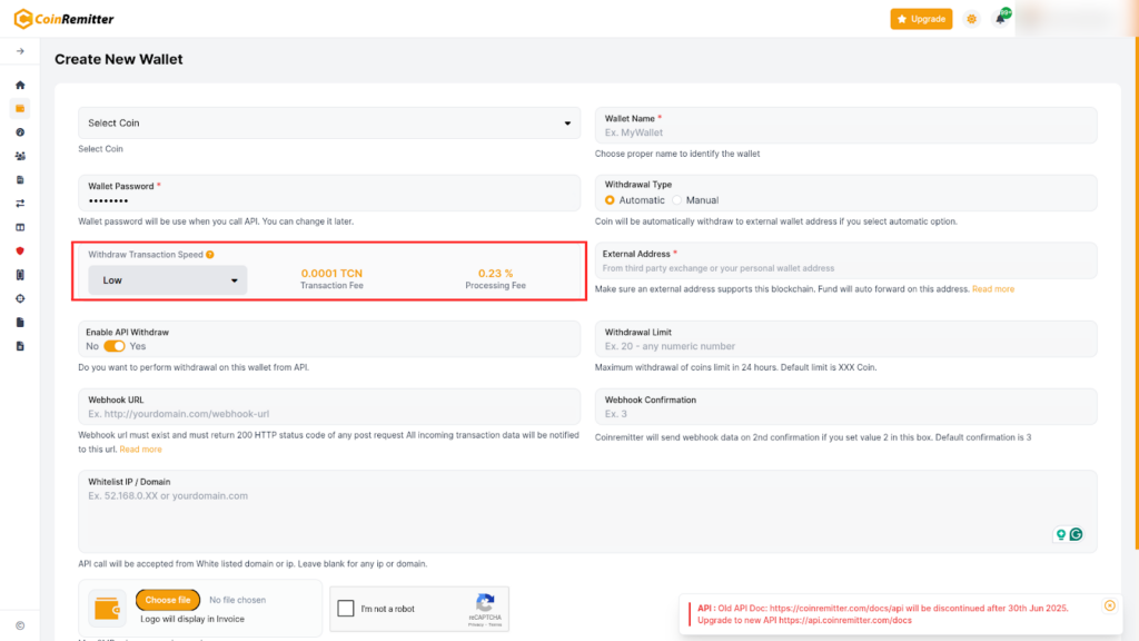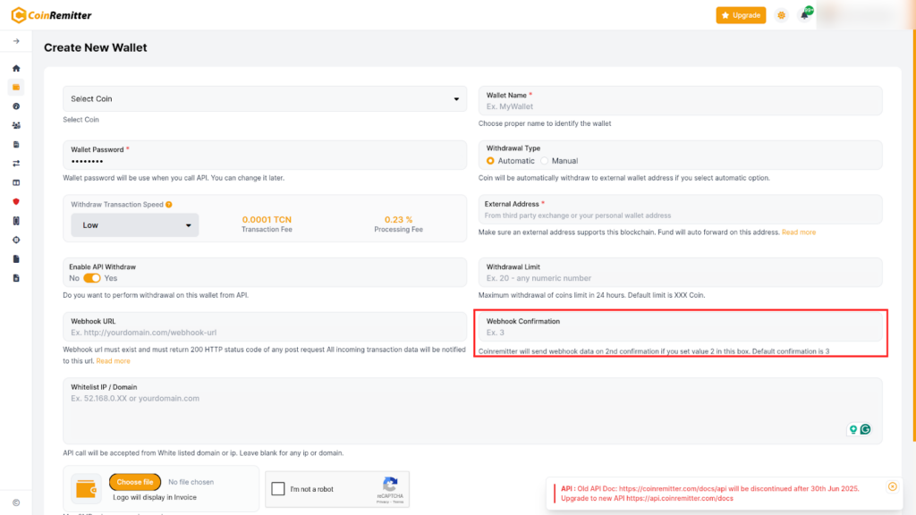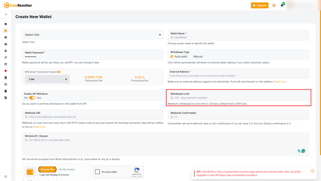 With the free plan, you can generate up to 500 addresses per wallet. However, to generate unlimited addresses per wallet, you can purchase CoinRemitter’s premium plan.