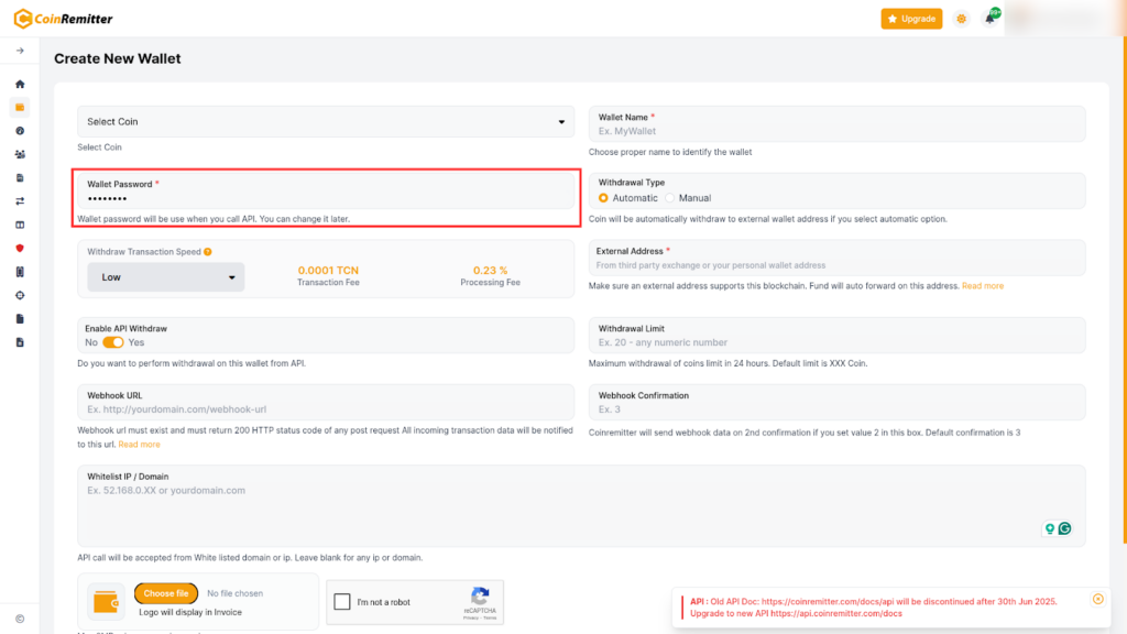 Creating a wallet is mandatory to accept payment in crypto with CoinRemitter. Below is the step-by-step guide to creating a wallet on our crypto payment gateway.